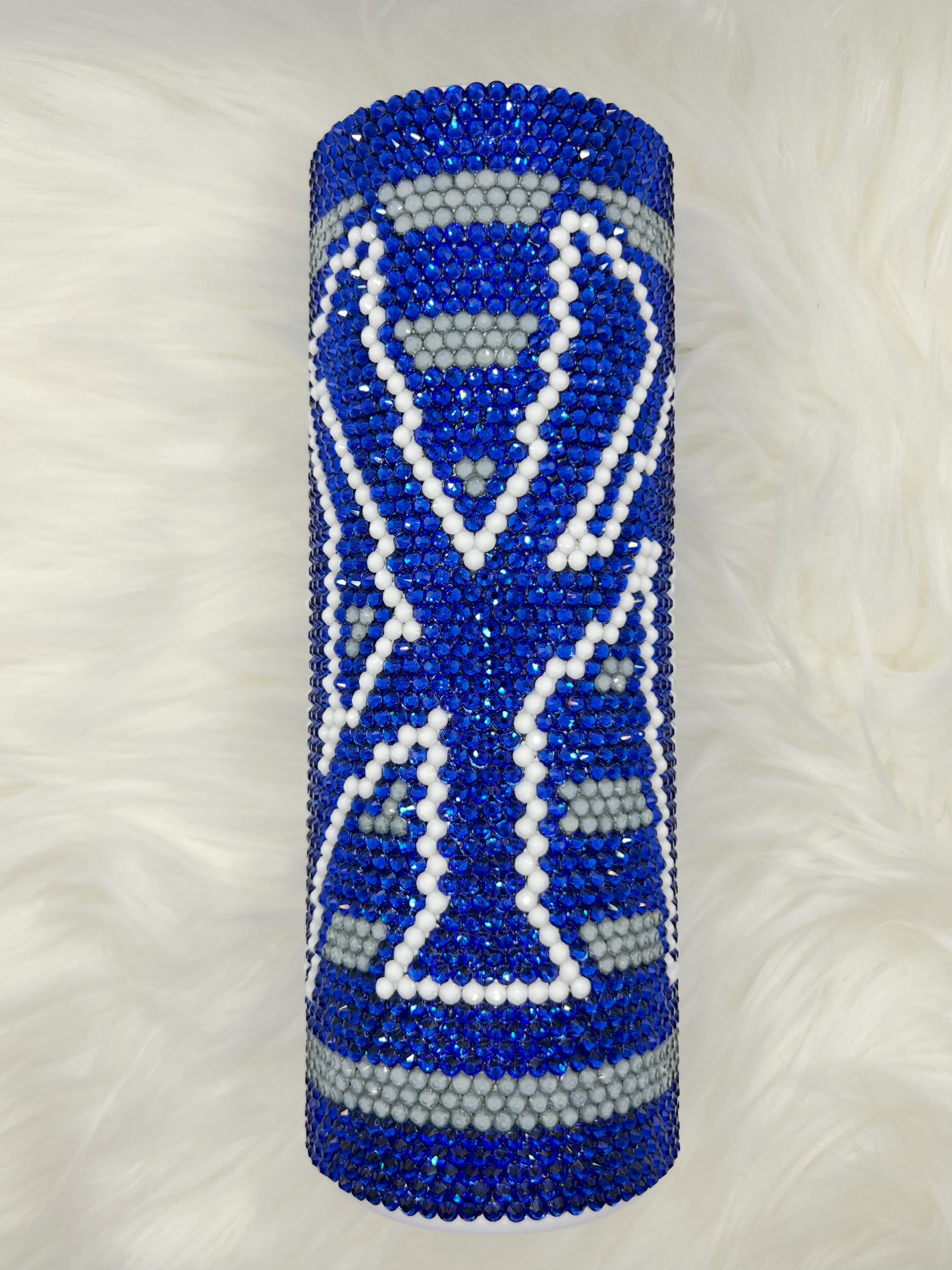 Turn your daily hydration into a statement with this handmade blue and grey rhinestone tumbler, a dazzling cup designed for those who love style as much as function. Each tumbler is individually hand-decorated with hundreds of rhinestones, giving it a glamorous shine that catches the light beautifully with every movement.