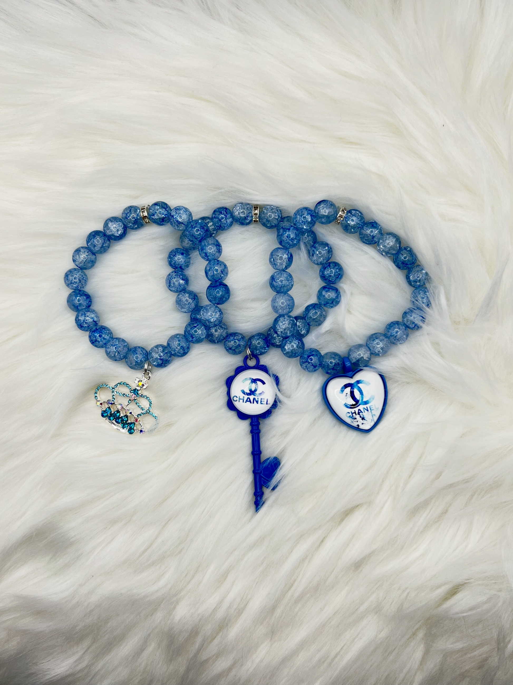 Luxury Blue Beaded Bracelet Set – 3-Piece Handmade Stackable Jewelry with Crystal Beads, Fashion-Inspired Charms & Elegant Gift for Women