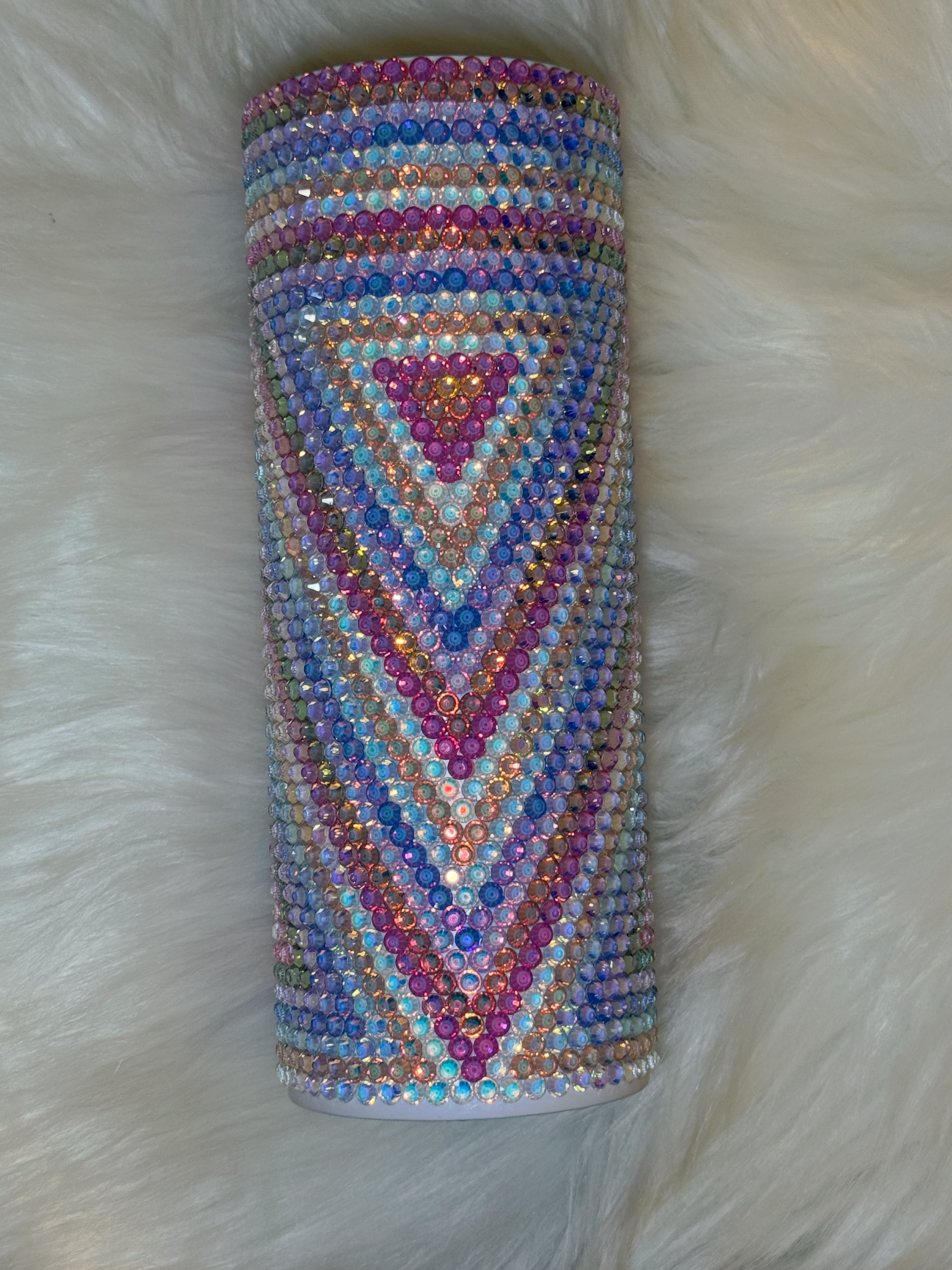 Make every sip shine with this stunning Rainbow Rhinestone Tumbler! Handcrafted with hundreds of vibrant crystals in a dazzling geometric pattern, this 20 oz insulated cup is the perfect mix of function and glam. Keeps drinks hot or cold while showing off bold sparkle and unique artistry.